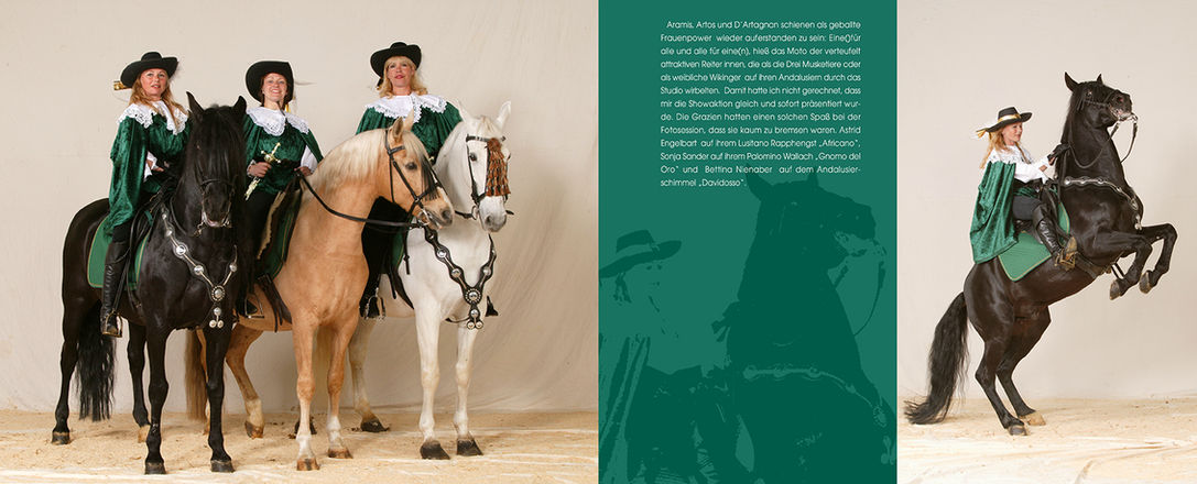 The encounters with the horses and people were as intense as I had never imagined before - and they were much more work than I had feared in my worst nightmares. As this shooting was offered free of charge, many horse owners who would otherwise never have thought of knocking on the door of a photo studio also came. This resulted in a wonderful cross-section of many different horse breeds, from professional riders and breeders to amateur riders, a colourful mixture of horse people and horses met in our studio. I was very happy about the wonderful results that can now be seen in this book."